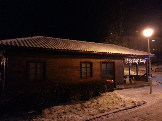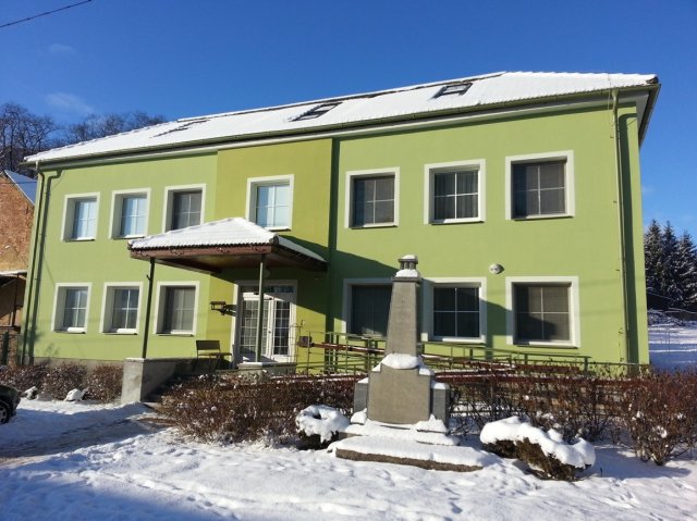 Pohled na Ubytovnu v zimě