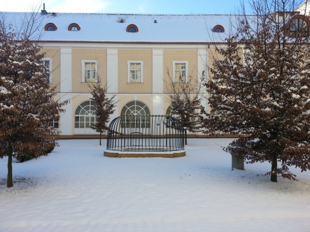 Pohled na nádvoří v zimě
